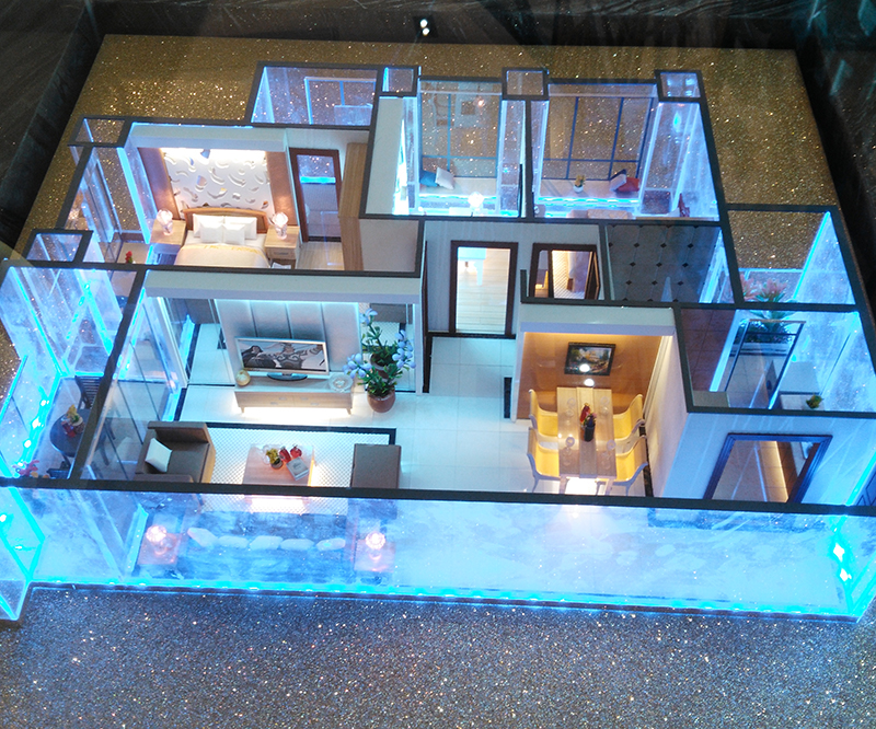 采用透明亞克力制作、內(nèi)部按比例制作家私布局、達(dá)到真實仿真效果。