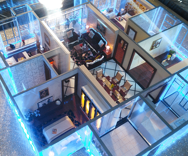采用透明亞克力制作、內(nèi)部按比例制作家私布局、達(dá)到真實(shí)仿真效果。