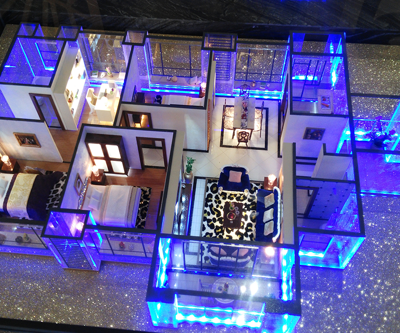 采用透明亞克力制作、內(nèi)部按比例制作家私布局、達(dá)到真實(shí)仿真效果。
